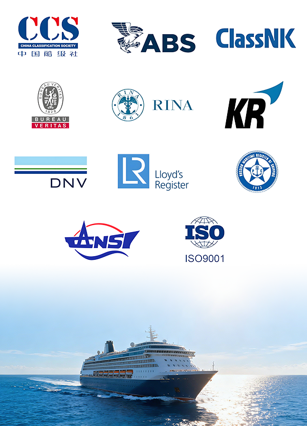 產(chǎn)品先后取得CCS產(chǎn)品型式認(rèn)證、BV工廠檢驗(yàn)型式認(rèn)證以及中國(guó)、美國(guó)、英國(guó)、法國(guó)、德國(guó)、意大利、挪威、日本、俄羅斯、韓國(guó)船級(jí)社產(chǎn)品檢驗(yàn)認(rèn)可證書。累計(jì)申請(qǐng)和獲得國(guó)家發(fā)明專利2項(xiàng),實(shí)用新型專利30項(xiàng)。2014年獲國(guó)家標(biāo)委會(huì)采用國(guó)際標(biāo)準(zhǔn)I類證書;2021年獲江蘇省工業(yè)企業(yè)質(zhì)量信用A級(jí)企業(yè);2024年獲中國(guó)機(jī)械工業(yè)聯(lián)合會(huì)全國(guó)機(jī)械工業(yè)產(chǎn)品質(zhì)量創(chuàng)新大賽優(yōu)秀獎(jiǎng)。公司在供應(yīng)鏈中幫助下游船廠和終端用戶降低采購成本,縮短供貨周期,提升了整個(gè)產(chǎn)業(yè)鏈的價(jià)值和競(jìng)爭(zhēng)力。
